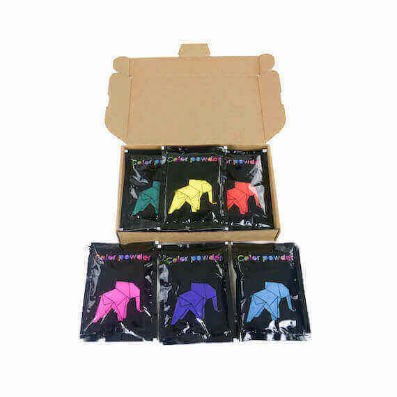 Con este paquete de polvos holi recibirás 42 bolsas de polvos de colores en 6 tonos (azul, amarillo, verde, rosa, naranja y lila). Los colores son intensos y al lanzarlos al aire crearás una increíble nube de colores. Este set es perfecto para batallas de color en familias de dos, tres o cuatro miembros. Durante el proceso de compra podrás elegir si quieres pedir un solo color, todos los colores o solamente algunos colores determinados.